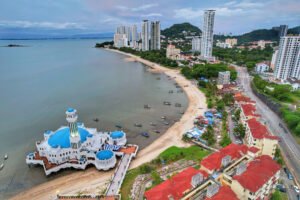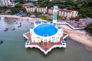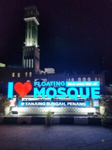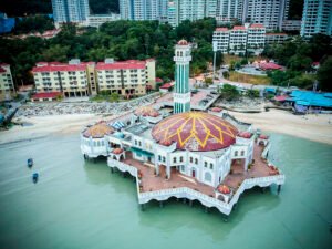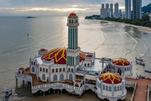 مسجد بينانج العائم يشبه تمامًا أي مسجد نموذجي آخر، ولكن بسبب تفرده الذي تم بناؤه في مياه المحيط، مما يجعله متميزًا عن الآخرين. تم بناؤه منذ وقت ليس ببعيد في عام 2005، وهو الوحيد الذي تم بناؤه في مياه المحيط.