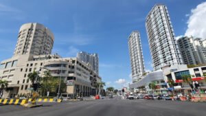 يعد Island Plaza أقرب مركز تسوق إلى Batu Ferringhi في Penang. يعمل المتجر متعدد الأقسام، ميتروجايا، والسوبر ماركت، التخزين البارد، كمستأجرين أساسيين. يوجد تحت سطحه مزيج من المحلات المحلية والعلامات التجارية العالمية مثل Quiksilver وCK Jeans وMNG وNike وBody Glove.
